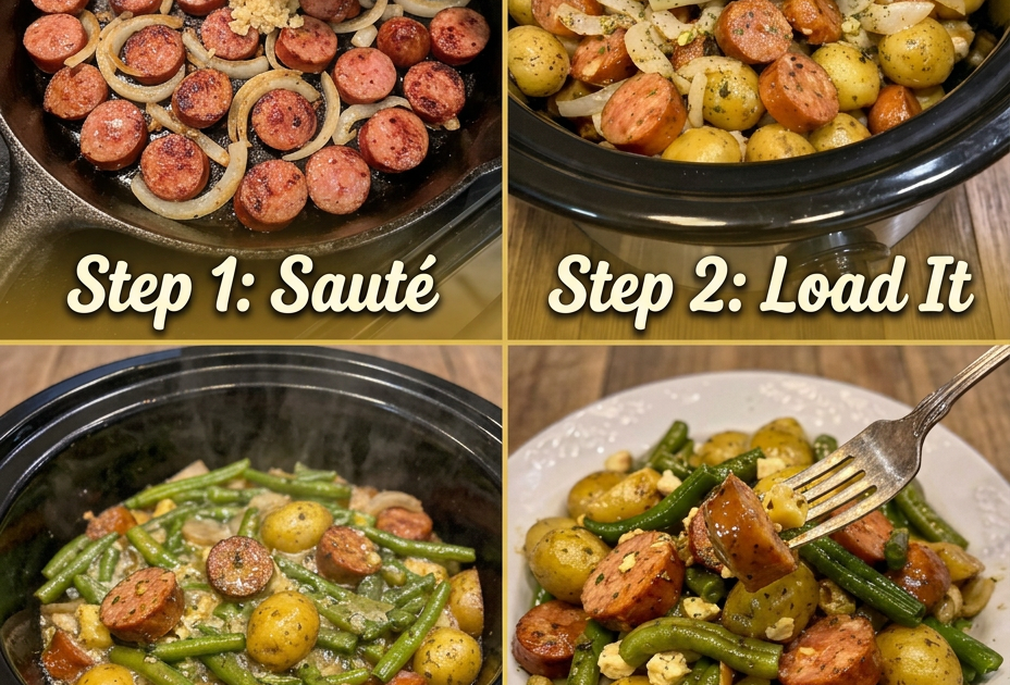 If you’re looking for a simple, hearty, and flavorful dinner, this Crockpot Garlic Butter Potatoes, Sausage & Green Beans recipe is the perfect choice. It’s a one-pot meal packed with rich garlic butter flavor and comforting ingredients.