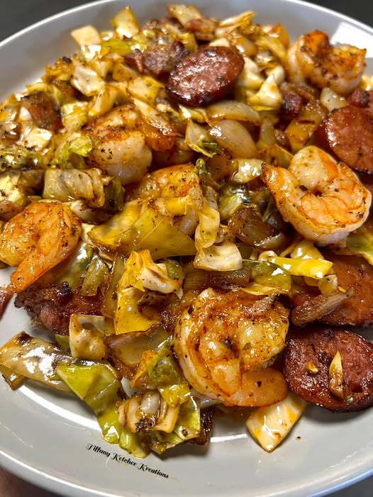 Savory Fried Cabbage with Shrimp, Sausage & Bacon 🥬🍤🥓