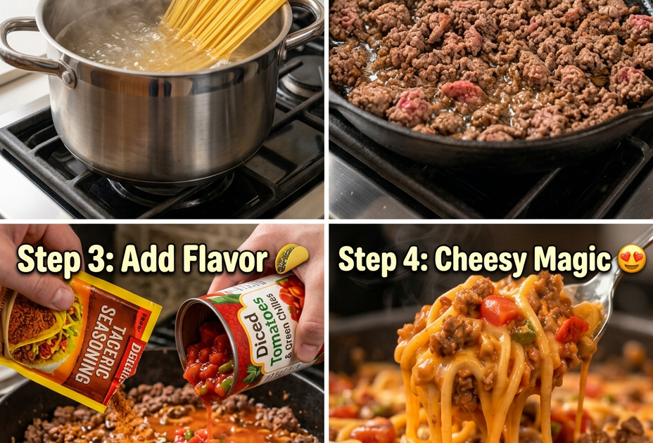 Taco Spaghetti is the perfect fusion of two favorite meals. It’s bold, creamy, and incredibly easy to make — a guaranteed hit for any dinner table.